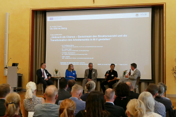Am 03. Juli 2025 fand in Schwerin die Netzwerkveranstaltung „Die GSA im Dialog“ statt - gemeinsam mit mehr als 60 Gästen aus Politik, Verwaltung, Wissenschaft und Wirtschaft. Wirtschaftsminister Dr. Wolfgang Blank verkündete den 2. Ideenaufruf für die Förderung beruflicher Weiterbildungsverbünde.