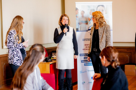 Ein besonderer Höhepunkt der Veranstaltung war das Grußwort der Ministerin für Justiz, Gleichstellung und Verbraucherschutz Mecklenburg-Vorpommern, Jacqueline Bernhardt. In diesem Rahmen überreichte sie das Rezertifikat des Mentoringprogramms an die Landeskoordinatorinnen Peggy Hildebrand und Judith Usbek. Die erneute Auszeichnung würdigt die hohe Qualität, Wirksamkeit und kontinuierliche Weiterentwicklung des Programms.