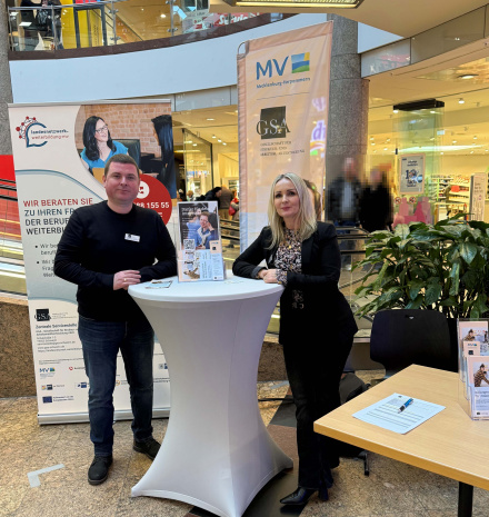 Am vergangenen Freitag, den 26.01.2026 nahm die GSA Schwerin gemeinsam mit der Servicestelle Vernetzte Weiterbildungsberatung M‑V aktiv an der JOB & SHOP Messe im Schlosspark‑Center Schwerin teil.
