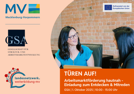 Unter dem Motto „Das Land fördert arbeitsmarktpolitische Instrumente – wir stellen sie vor“ gaben die GSA und das landesnetzwerk.weiterbildung-mv gemeinsam spannende Einblicke in ihre Arbeit und zeigten, wie Unternehmen von den arbeitsmarktpolitischen Instrumenten der Landesregierung profitieren können.